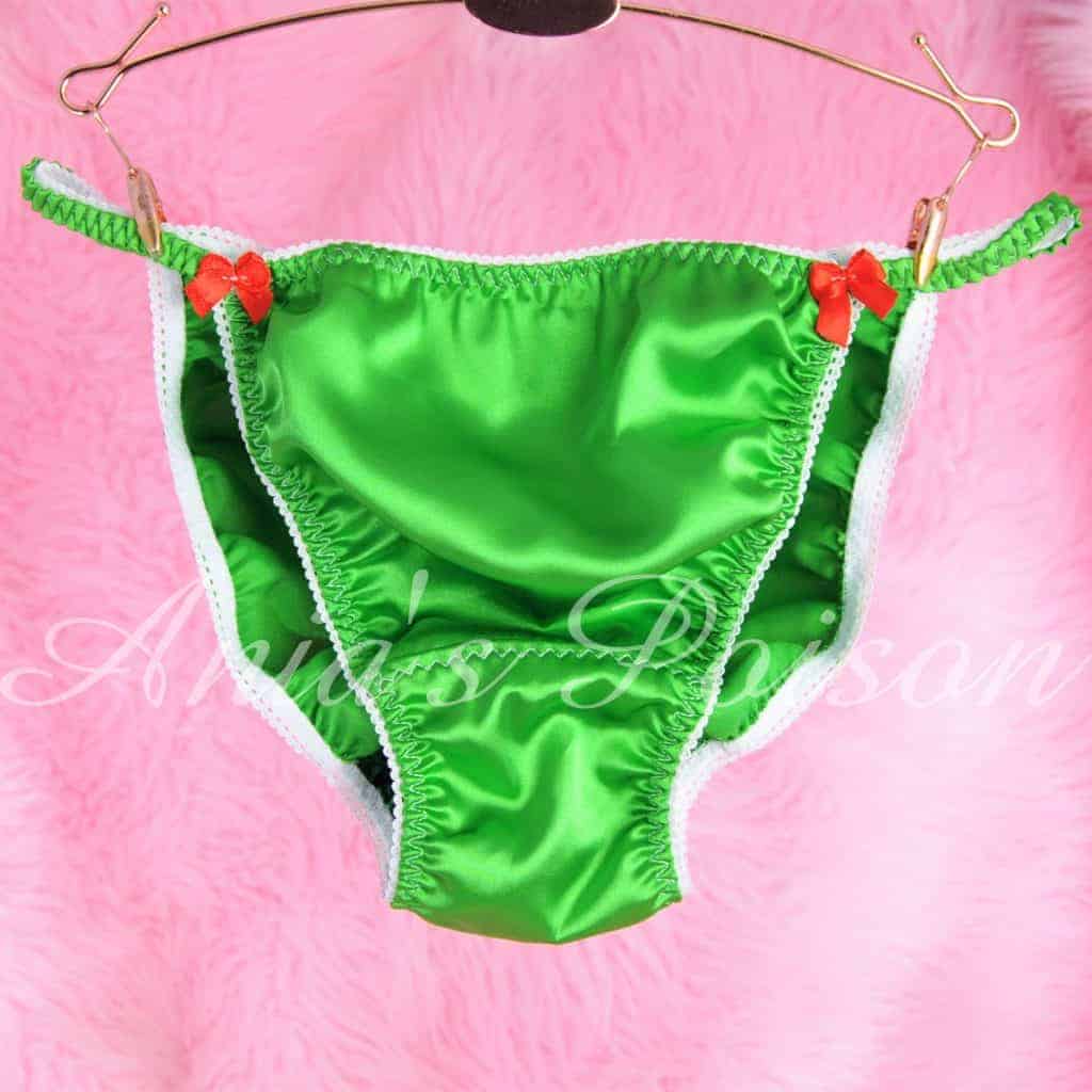 Available in both a men’s and lady’s cut, these shiny satin string bikini sissy panties are sure to make your heart grow 3 sizes and beyond!